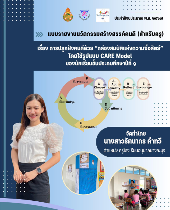 นวัตกรรม เรื่อง การปลูกฝังคนดีด้วย "กล่องสมบัติแห่งความสื่อสัตย์" โดยใช้รูปแบบ CARE Model นักเรียนชั้นประถมศึกษาปีที่ 1