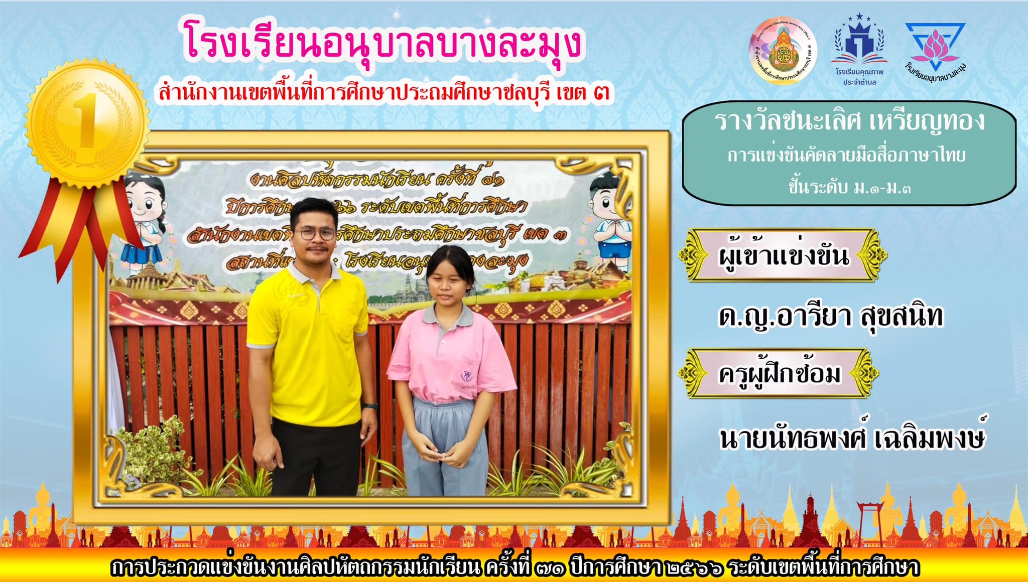 การแข่งขันคัดลายมือสื่อภาษาไทย ระดับชั้นมัธยมศึกษาปีที่ 1 - 3 |